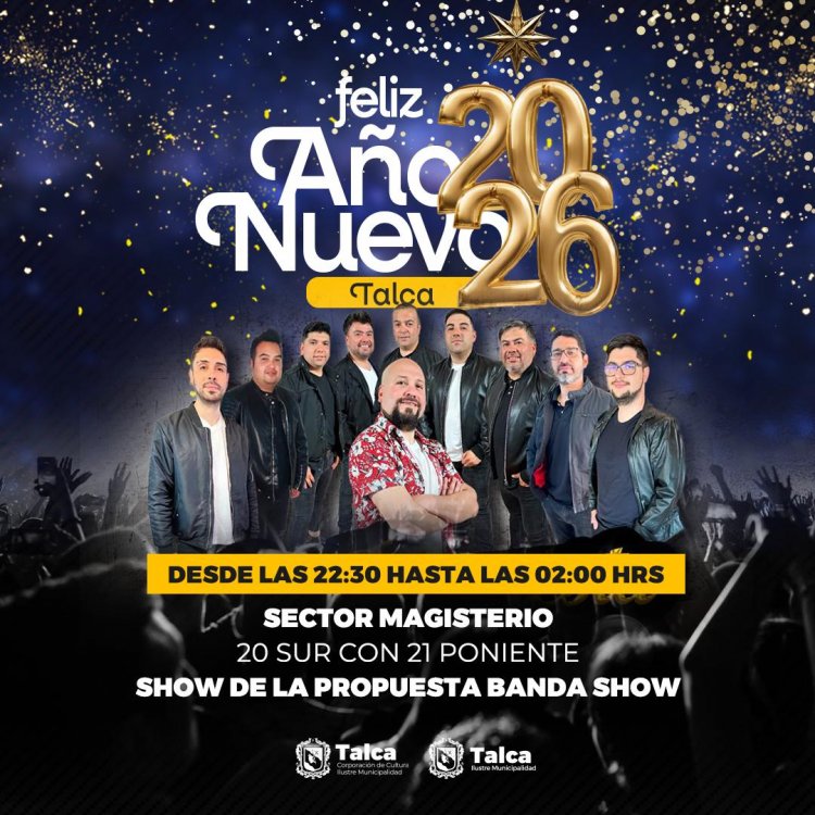 La Municipalidad de Talca, a través de la Corporación de Cultura, realizará actividades gratuitas para recibir el Año Nuevo 2026, priorizando una celebración segura, inclusiva y cercana a los vecinos y vecinas. Tal como en años anteriores, no habrá fuegos artificiales, en consideración a personas con TEA, adultos mayores y mascotas, optando por festejos en distintos barrios de la comuna.