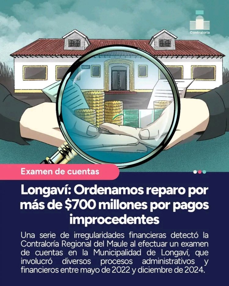 Una serie de irregularidades financieras detectó la Contraloría Regional del Maule al efectuar un examen de cuentas en la Municipalidad de Longaví, que involucró diversos procesos administrativos y financieros entre mayo de 2022 y diciembre de 2024.