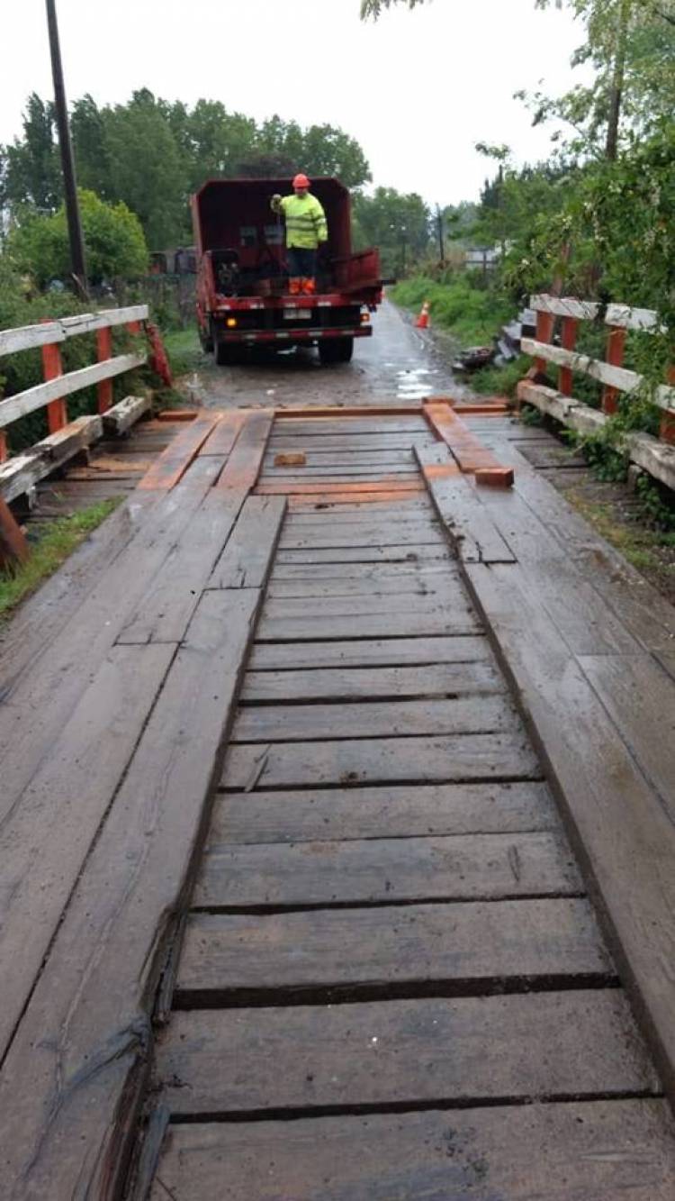 Personal municipal y de la Direcciòn de Vialidad repararon durante esta jornada el puente "La Quiriquina", el cual se encontraba en pésimas condiciones y era un riesgo evidente de accidente.